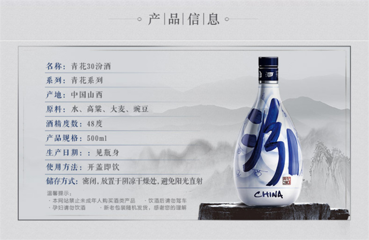 青花汾酒30年 清香型白酒 48°500ml