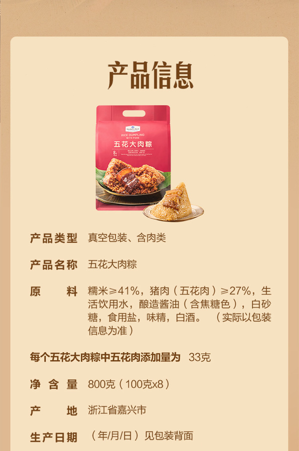 【山姆直采】山姆 五花大肉粽 8只 800g