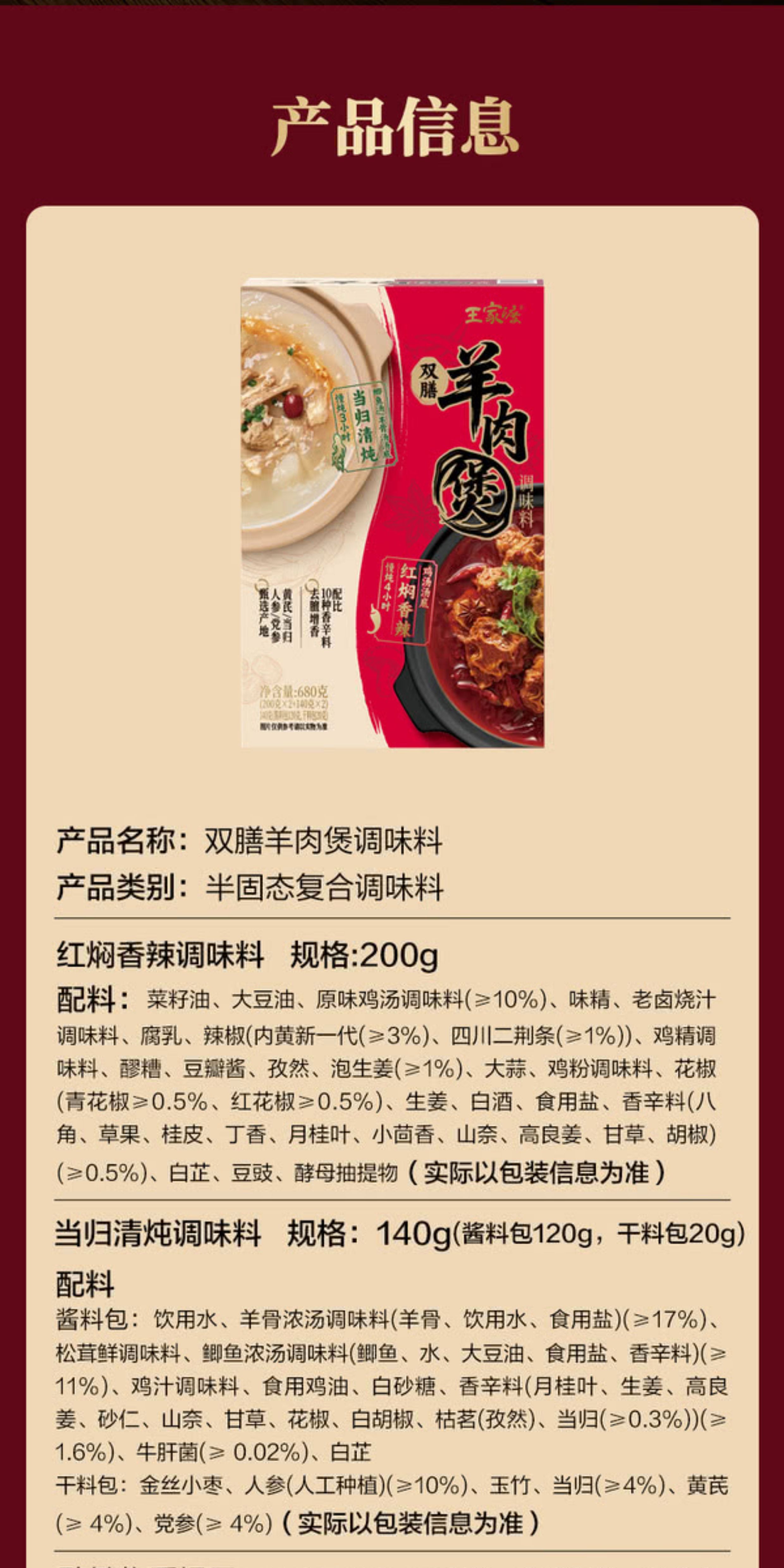 【山姆直采】王家渡 双膳羊肉煲调味料 680g
