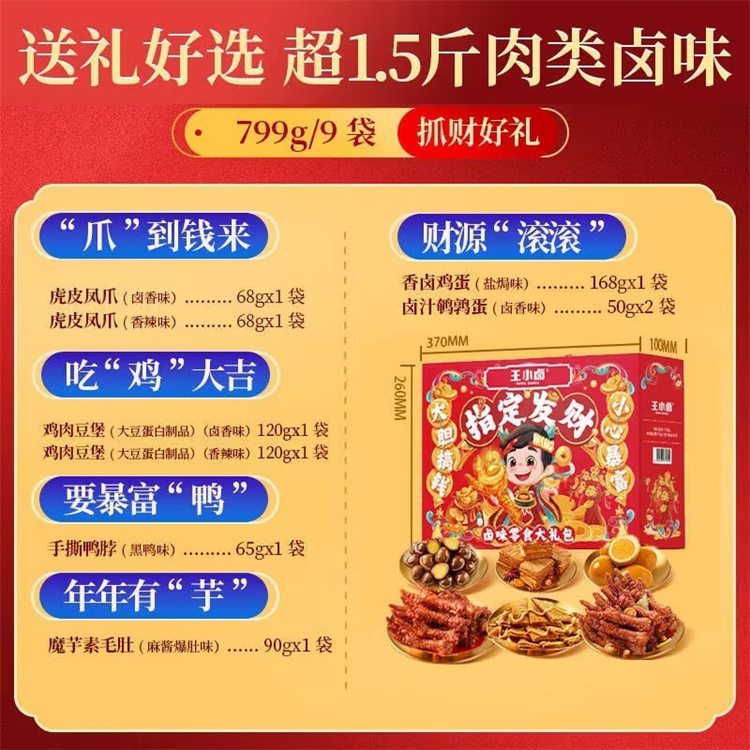 王小卤 指定发财卤味零食礼盒 799g(内含9袋)