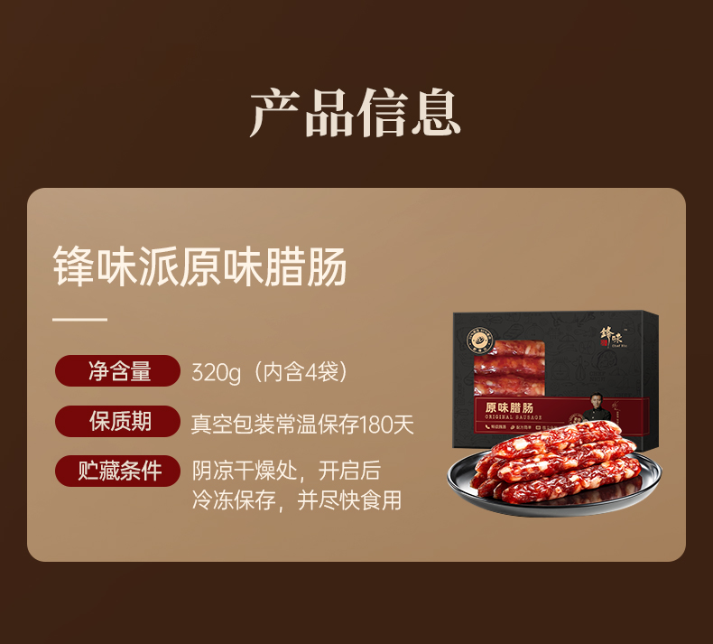锋味派 原味腊肠 320g